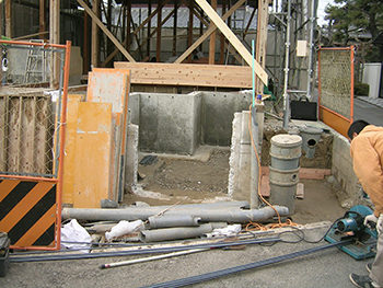 無筋のコンクリート基礎だったところは、添え基礎で補強しました。