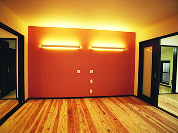 間接照明や漆喰壁にすることで、柔らかさを演出し、素敵なインテリアにしました。