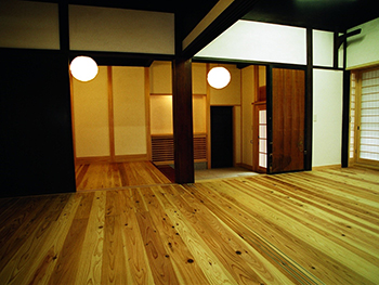 昔からの底冷えする土間や板の間を無垢のパイン材に張り替えたので、素足でも心地良いです。