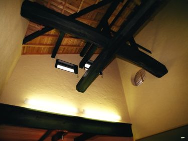 既存の太い柱や大きな梁の木組みを合わせ、印象的で格のある空間を作りました。